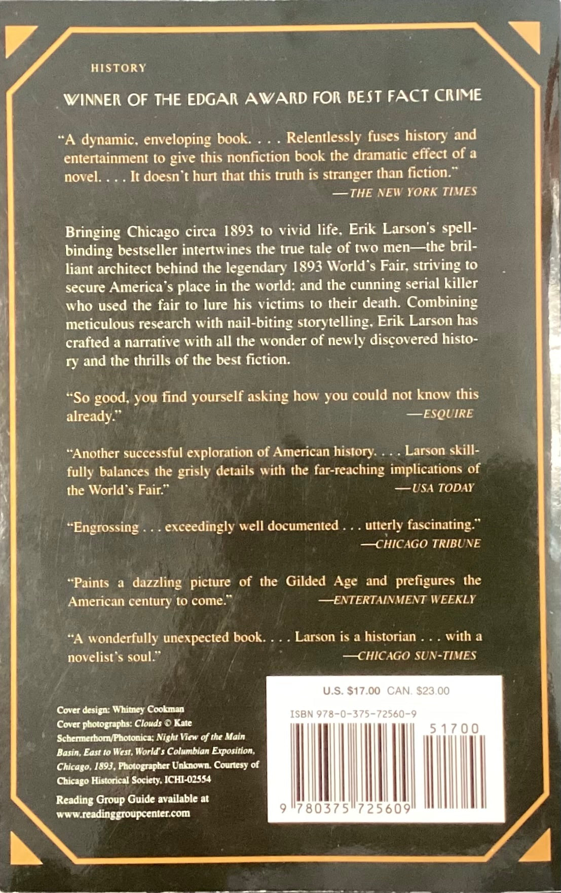 Bringing Chicago circa 1893 to vivid life. Erik Larson's spell-binding bestseller intertwines the true tale of two men. Painting a dazzling picture of the Gilded Age.