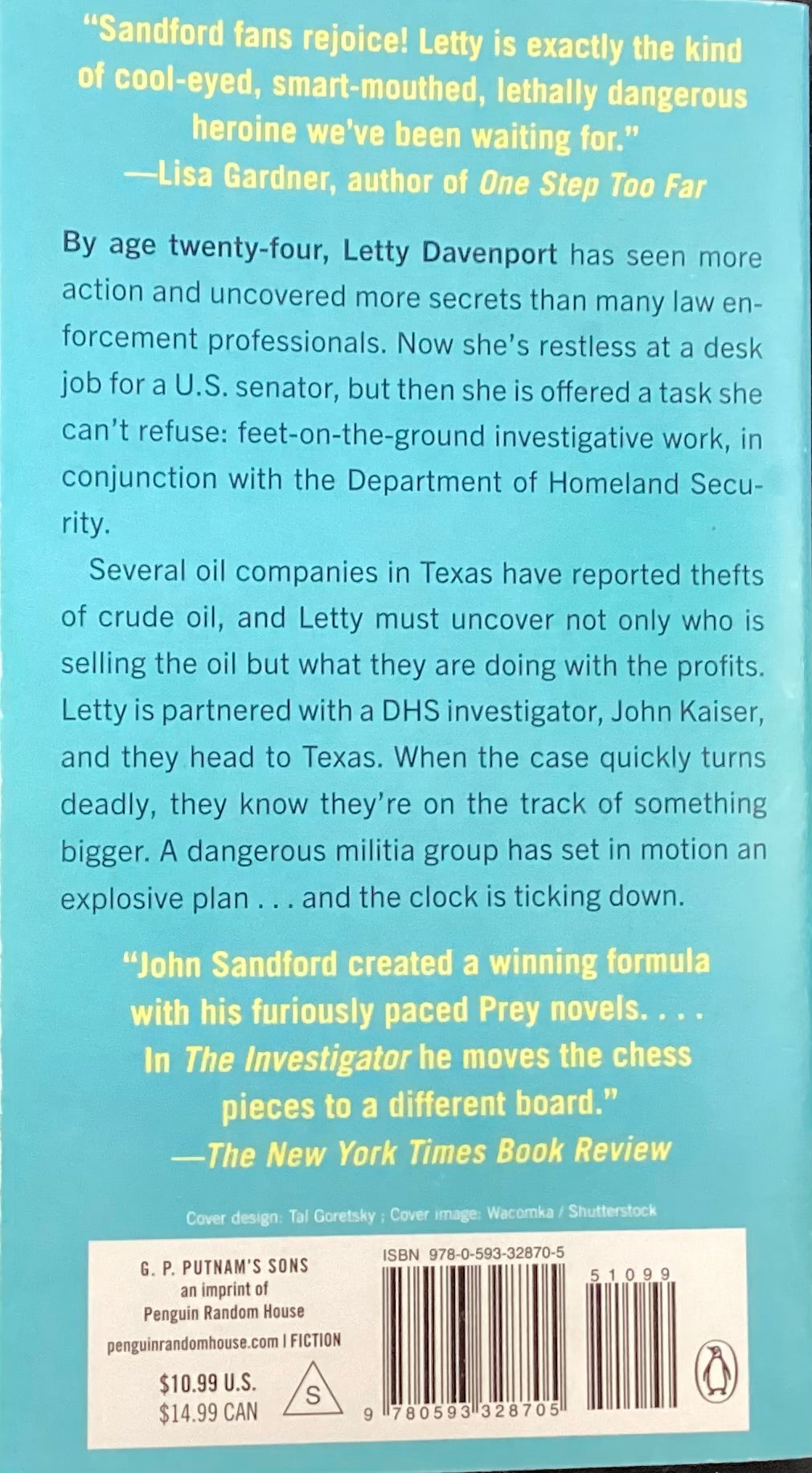 The Investigator is a procedural action thriller in which the technical sleuthing only heightens the tension. Fans of Lucas Davenport series will find much to like in the adventures of his adopted daughter.